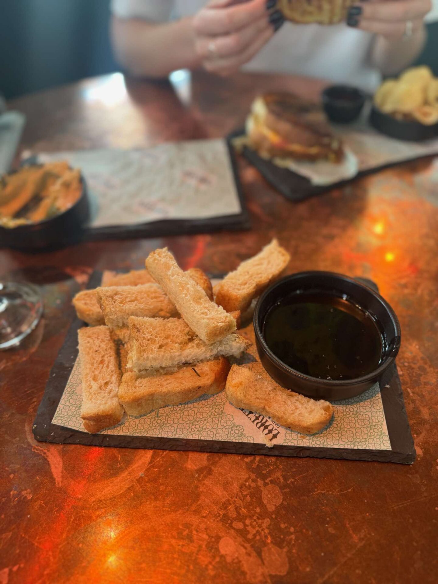 Our waitress was really warm and full of recommendations, steering us towards the bread and oil followed by hummus with flatbread starters – they were so good we kept asking for more, which she happily brought us (what a star!).